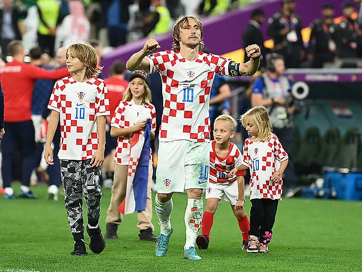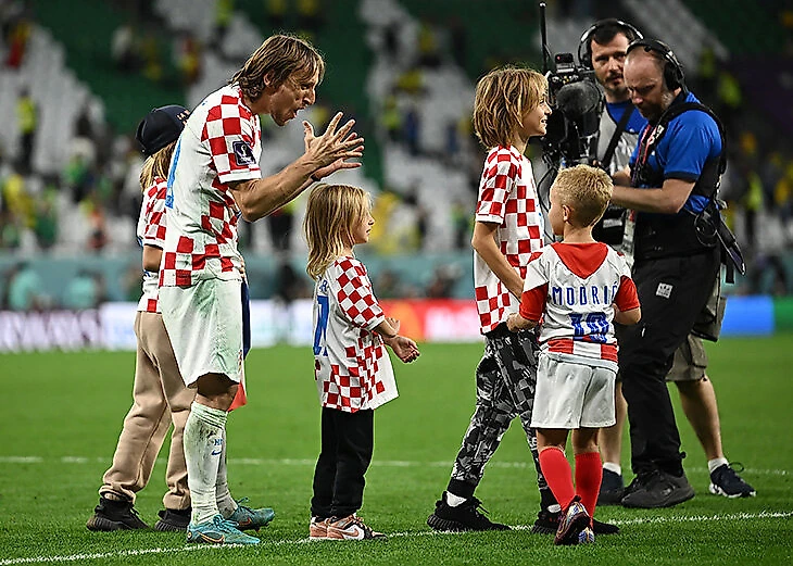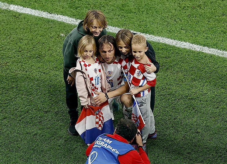 Лука Модрич с детьми после победы над Бразилией в четвертьфинале. Много маленьких Модричей!