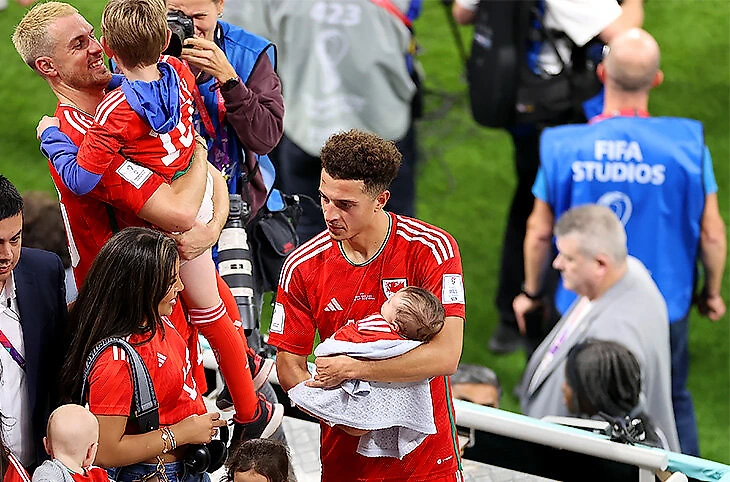 Пока Аарон Рэмзи влюбленно смотрит на позирующего фотографу сына, Итан Ампаду держит на руках первенца. Для них приезд Уэльса на ЧМ – уже праздник.