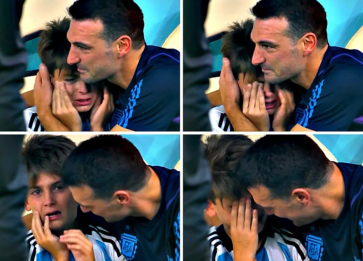 Сын Лионеля Скалони рыдает от радости – команда его отца только что вышла в полуфинал ЧМ.