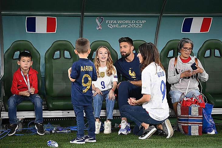 Оливье Жиру после поражения от Туниса привел семью на скамейку. У всех – футболки с девятками.