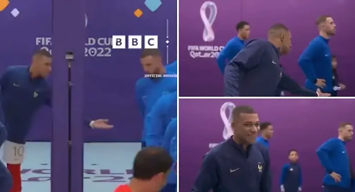 Мбаппе, явно смущенный случившимся, рассмеялся и продолжил разминку.