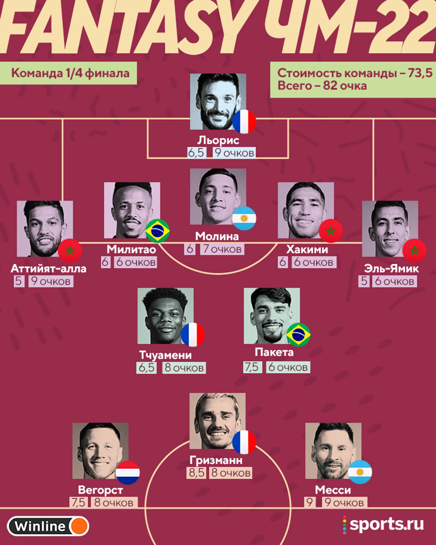 Фэнтези-сборная лучших в четвертьфиналах ЧМ-2022, чтобы было легче подобрать героев на полуфиналы.