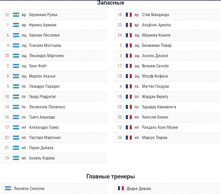 Причем, у Аргентины нет таких топ игроков в каждой линии.