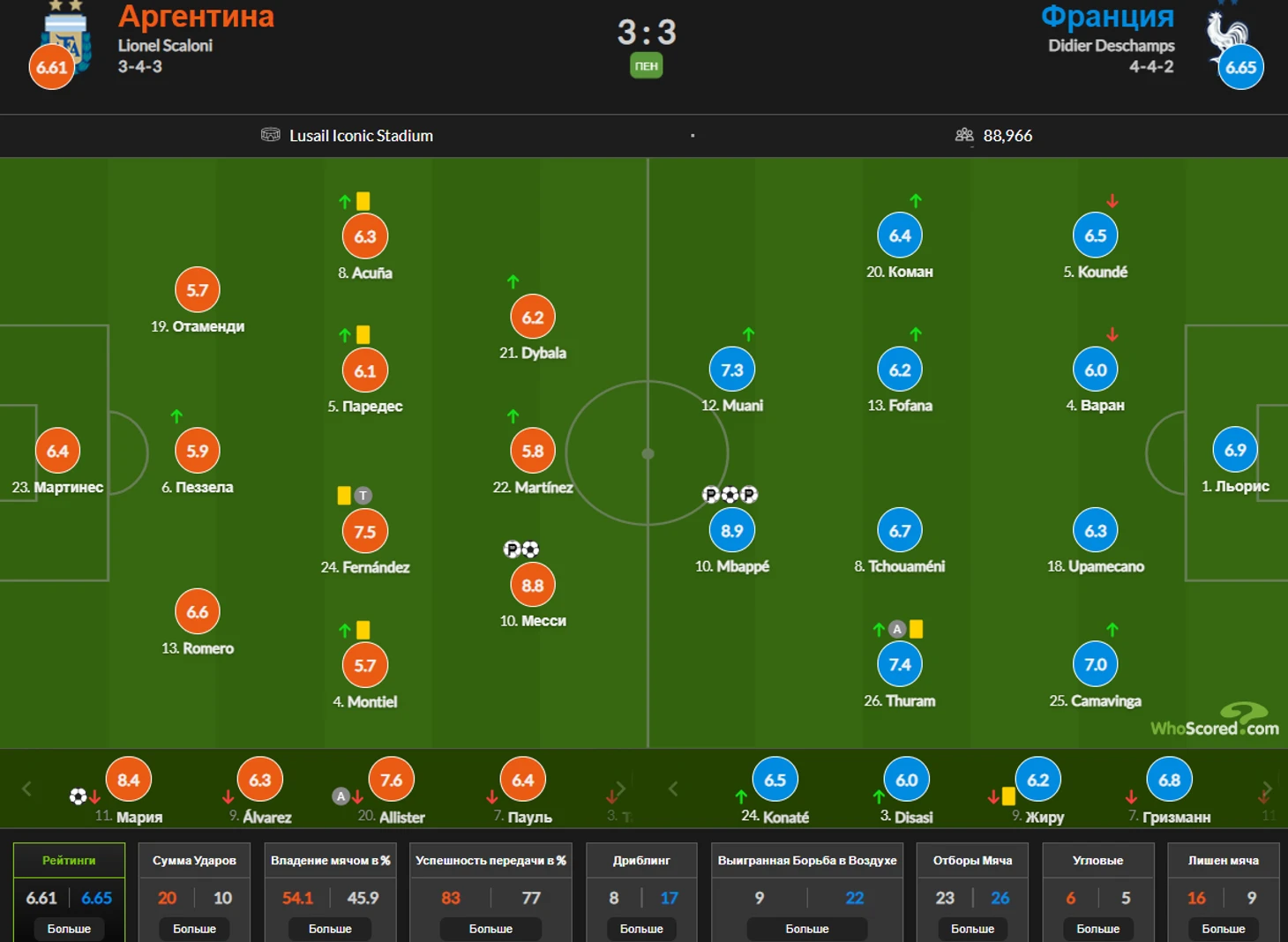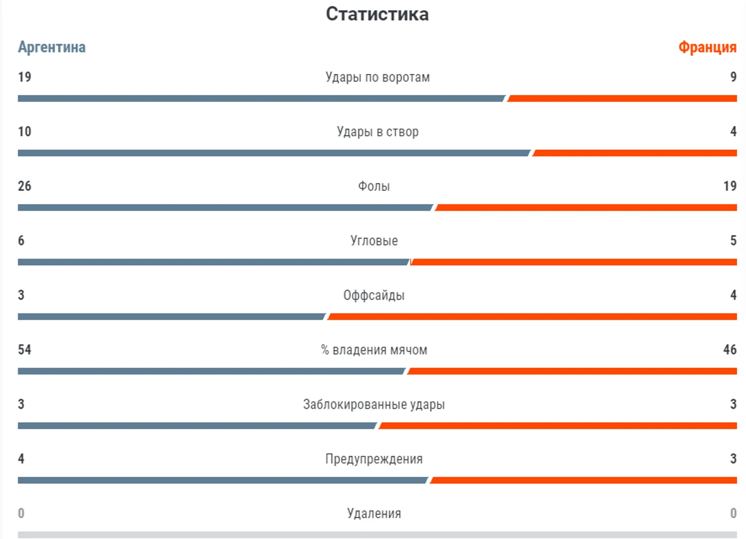 Статистика финала Аргентина : Франция. «Говорят цифры»