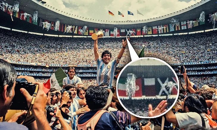 А самые внимательные пригляделись к фото с Диего, а точнее, к флагам, которые были развешаны по периметру стадиона.