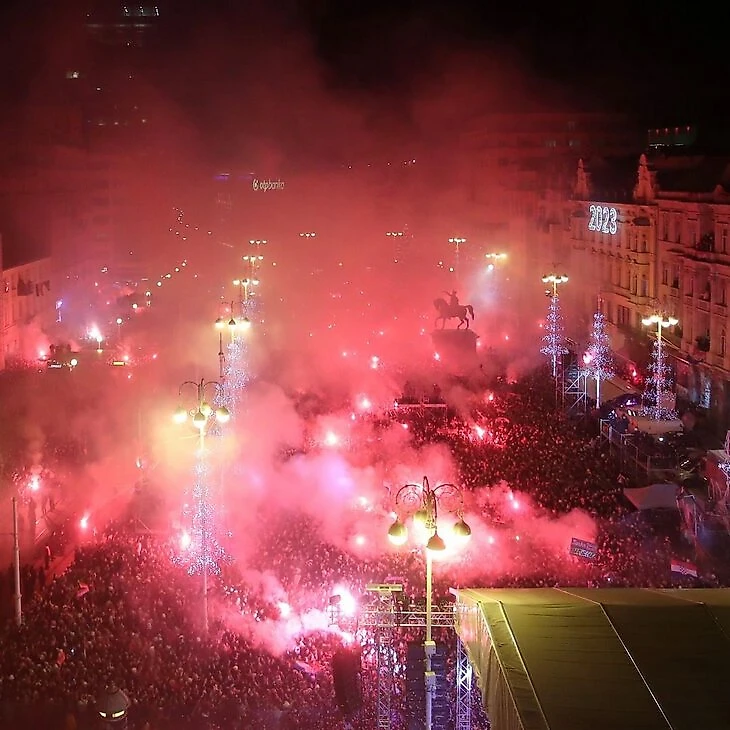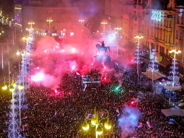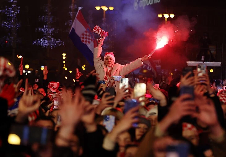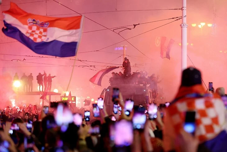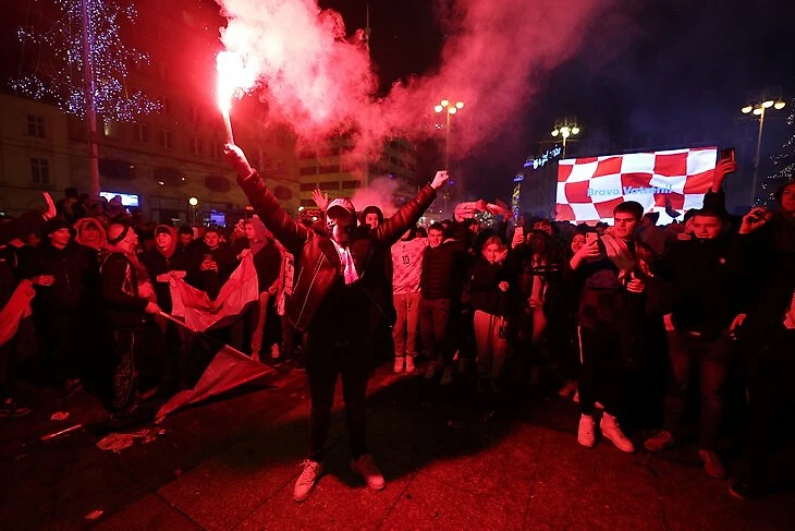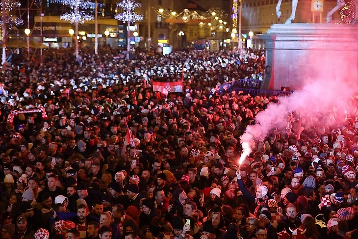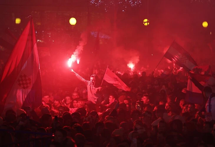 В Хорватии начали праздновать сразу после победы над Марокко в матче за 3-е место (2:1). В Загребе – салюты и фейерверки.
