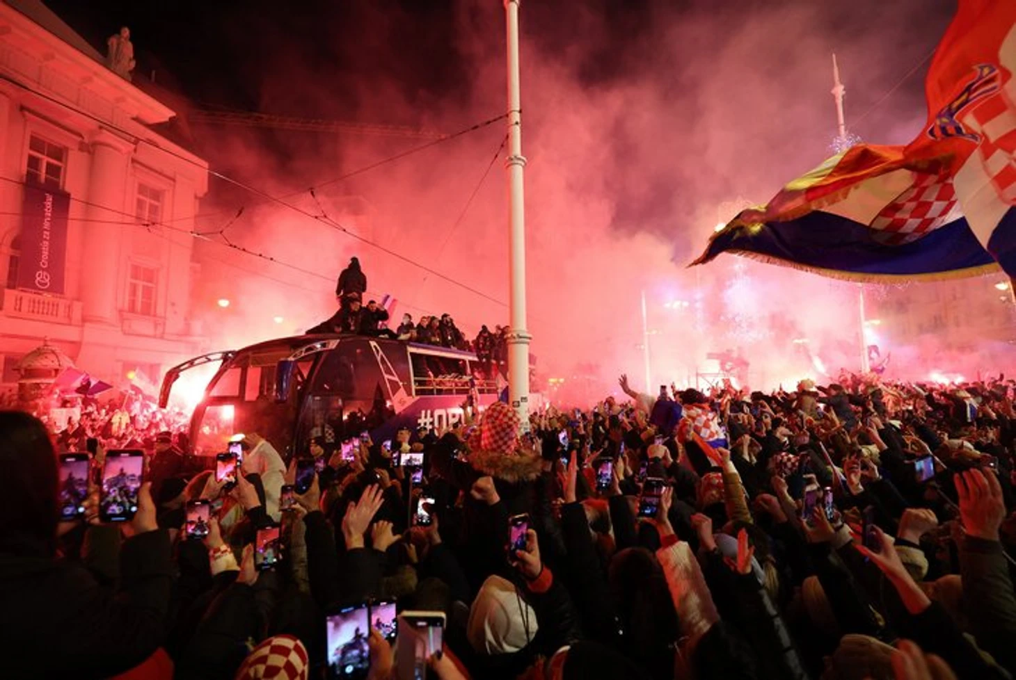 Хорватия безумно празднует бронзу ЧМ-2022: игроки с файерами и целый город на одной площади