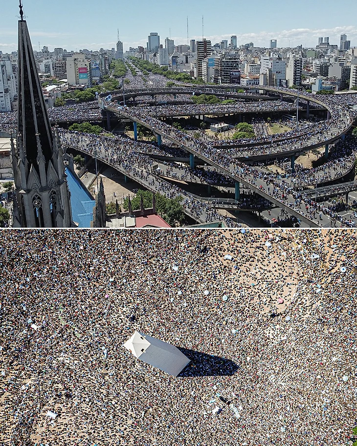 📹Жесть на чемпионском параде в Аргентине: все дороги заполнены болельщиками, люди даже падали с мостов😱😱😱