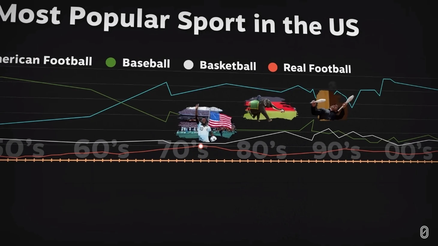 Взгляните на график самых популярных видов спорта в США с течением времени. Футбол всегда пытался развивать любой импульс.