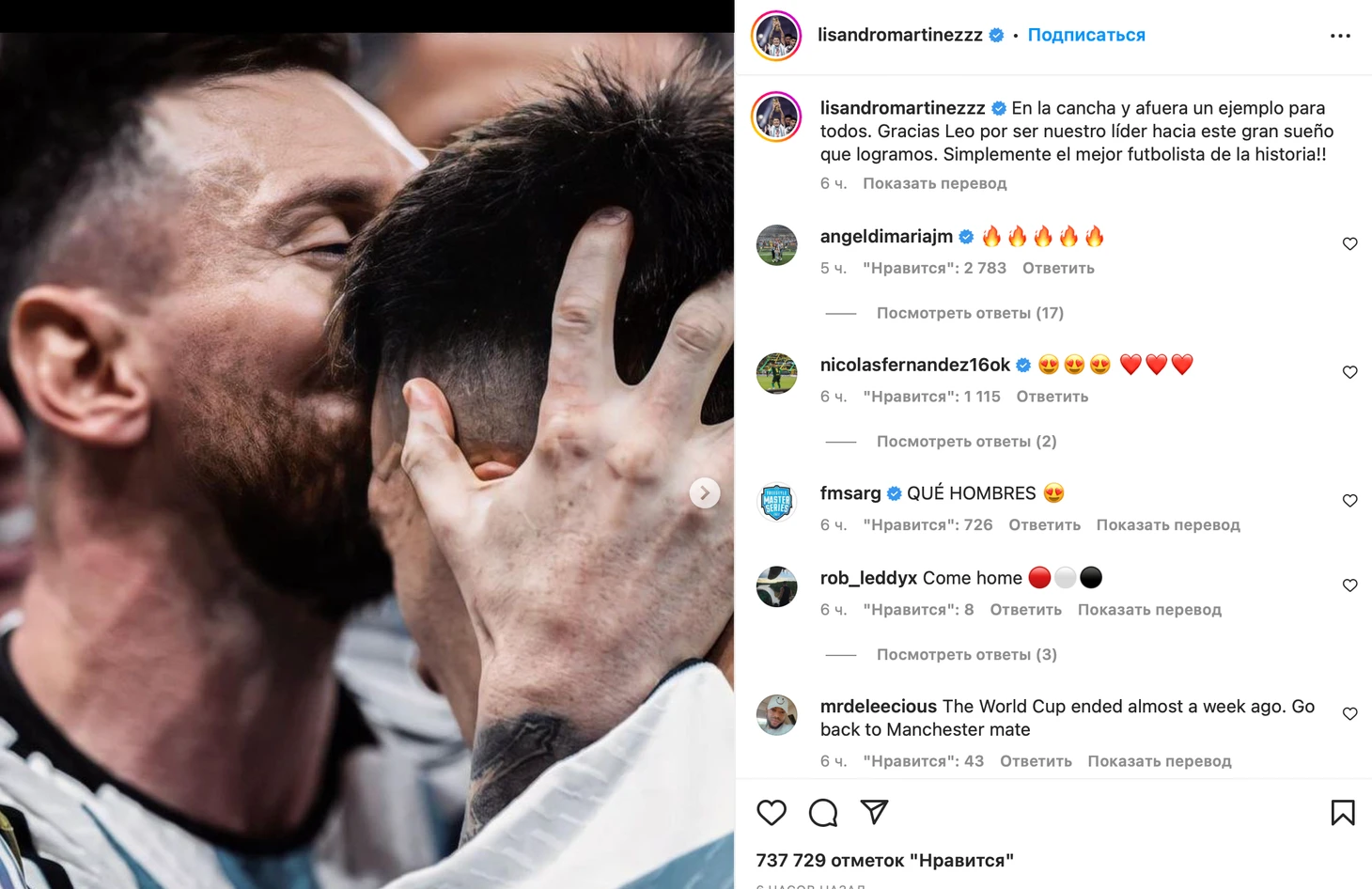 Лисандро Мартинес посвятил очередной пост Месси. Он назвал Лео примером для всех - «на поле и за его пределами»
