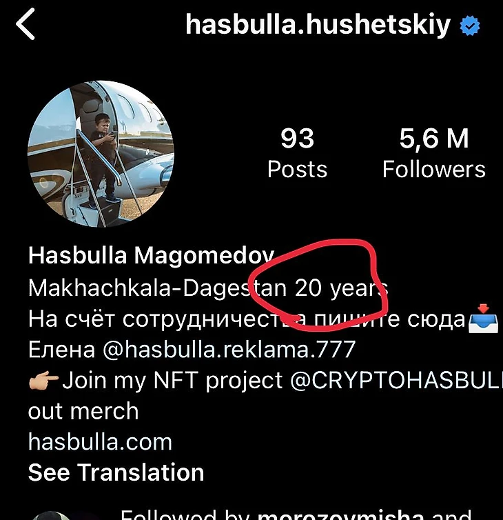 Сам Хасбик не скрывает реальный возраст, на его странице в инстаграме указано, что ему 20 лет.