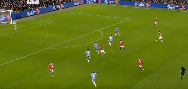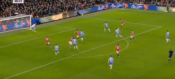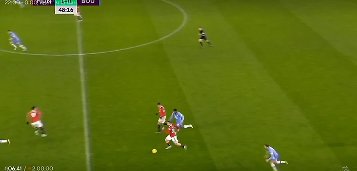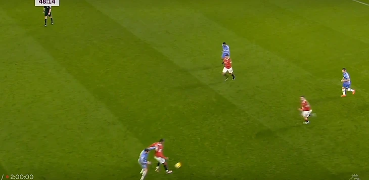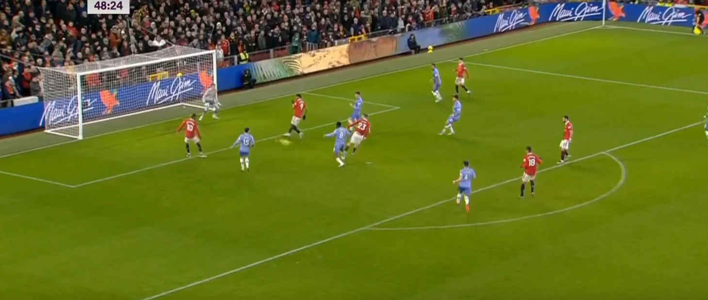 Шоу вышел из-под пресинга атакующих игроков соперника и отдал на Рэшфорда, который тут же вернул мяч Люку.