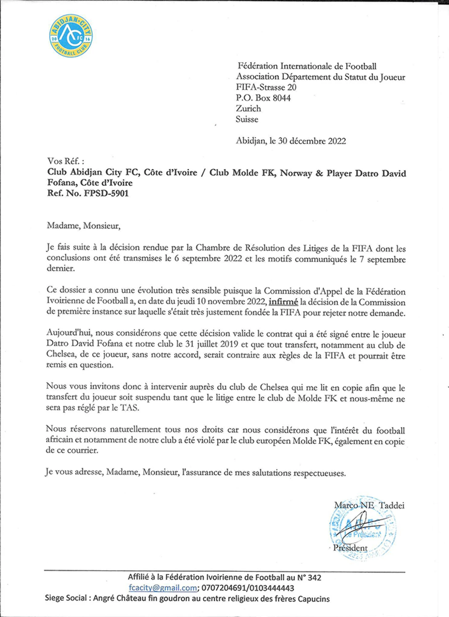 «Абиджан Сити» настаивает, что ему полагаются 1,5% от сделки с лондонцами. Клуб потребовал от ФИФА отменить трансфер.