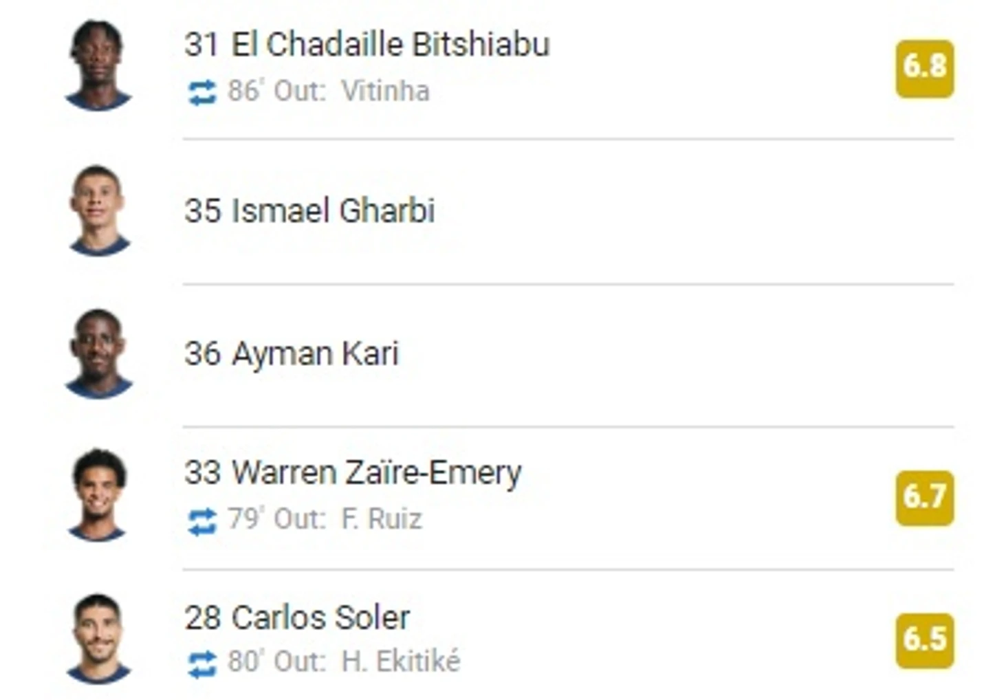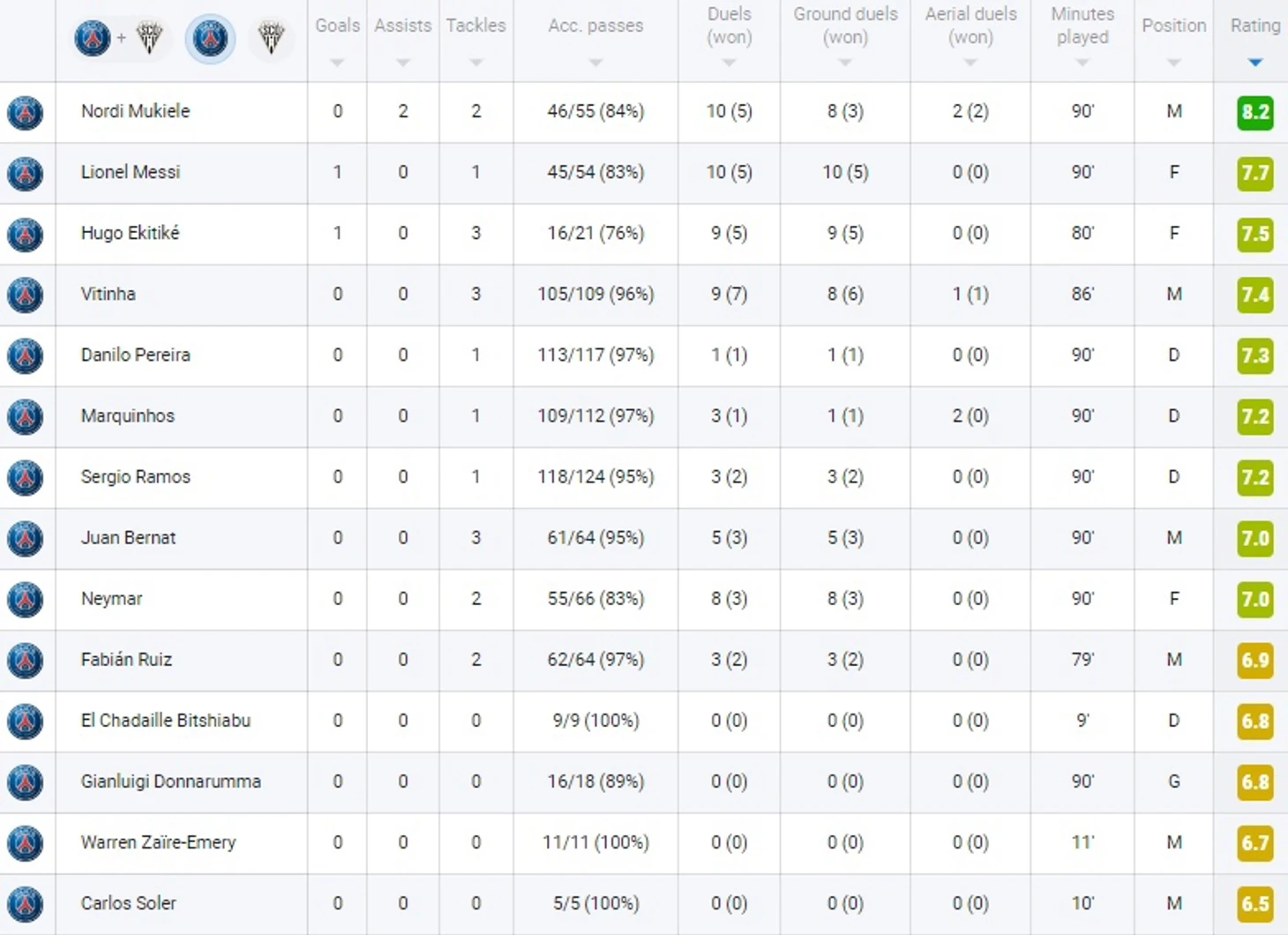 В среднем парижане получили довольно высокие баллы за эту игру, но особенно высоко портал SofaScore оценил Норди Мукиеле. Скучавший на воротах Доннарумма, напротив, стал самым низкооцененным игроком.