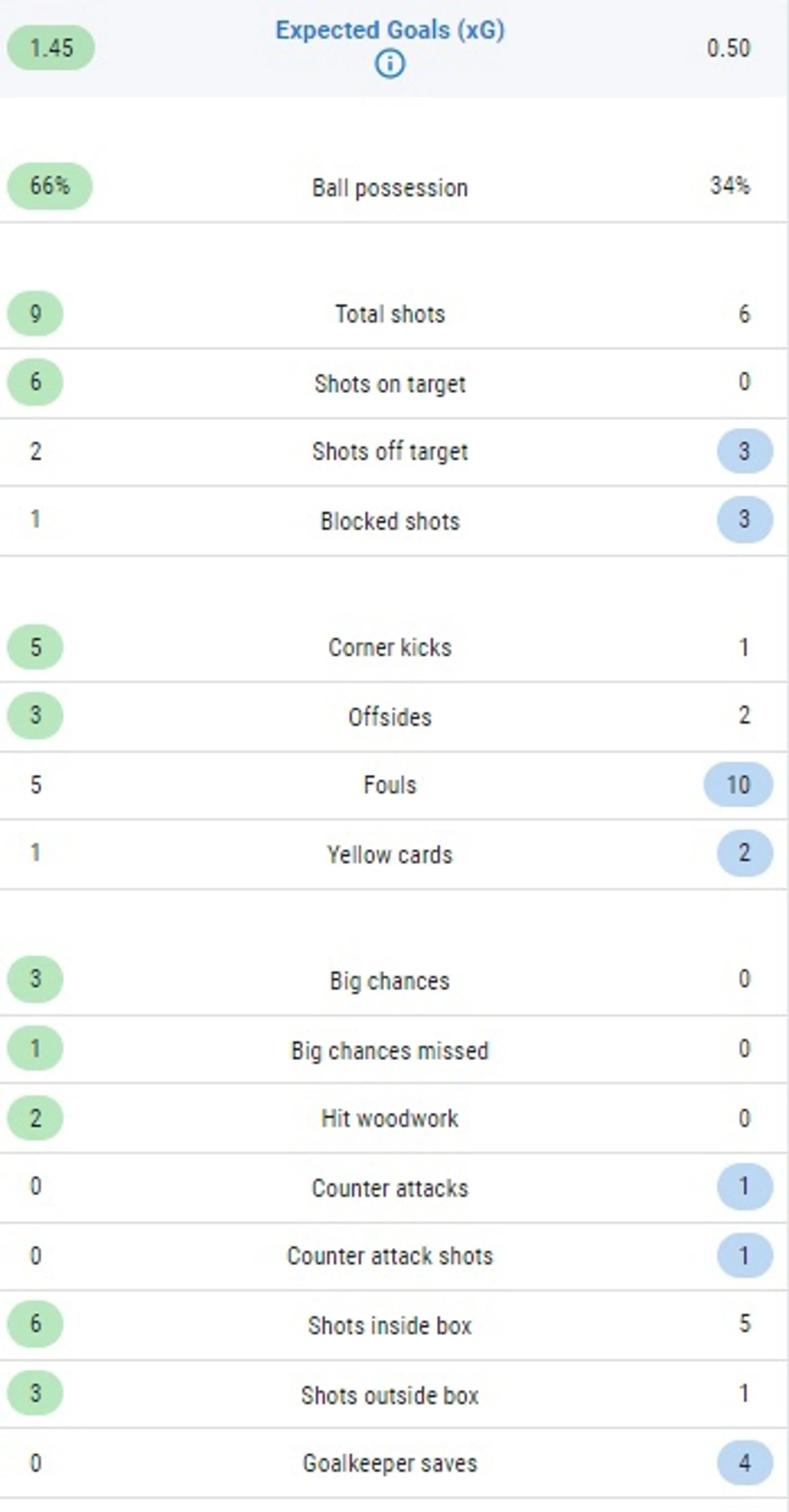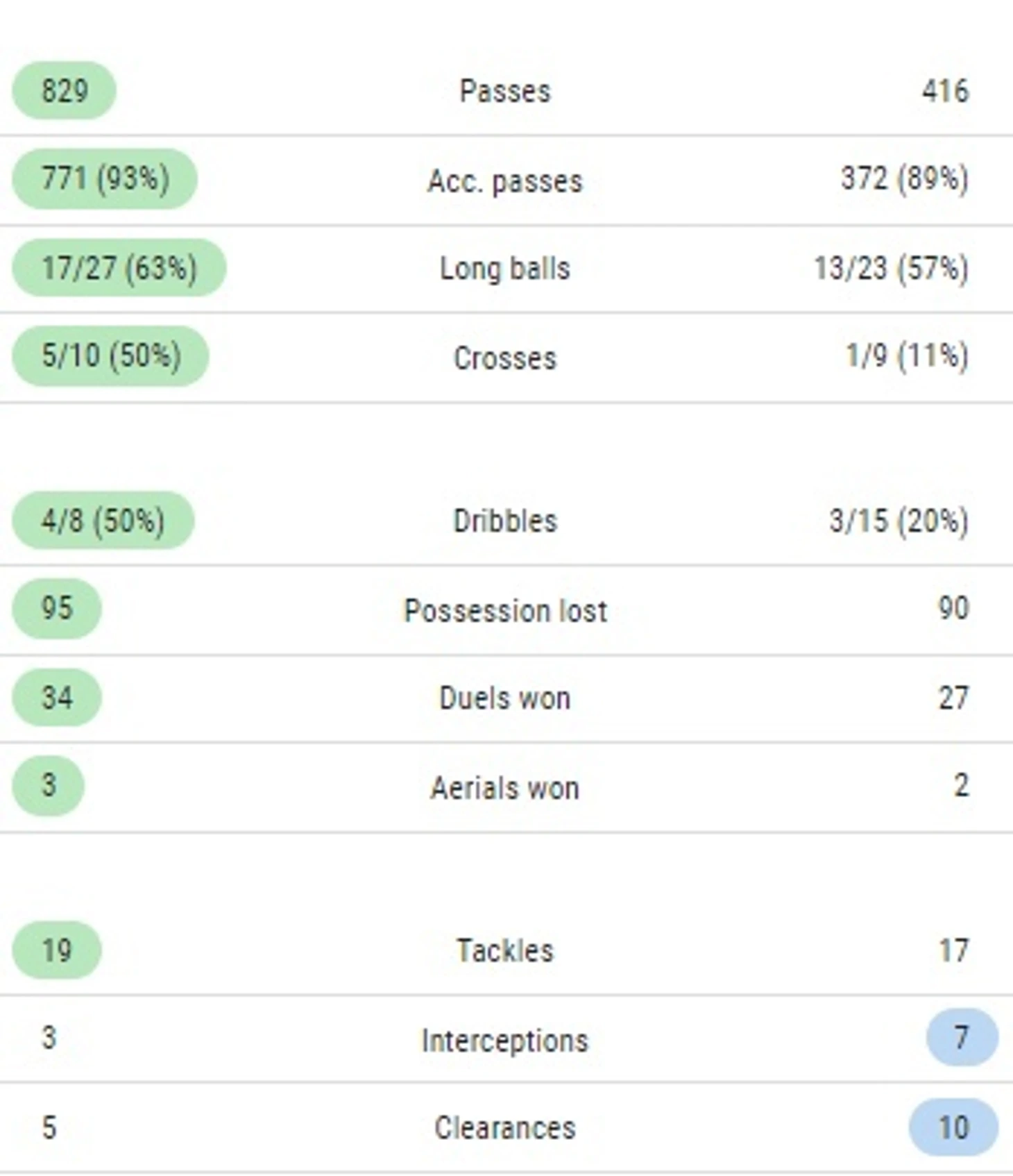 А это расширенная статистика по обеим командам («ПСЖ» в левой колонке):