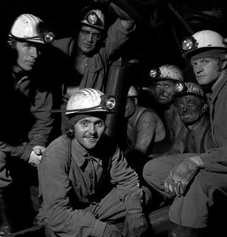 1972. Робер Эрбен (крайний справа) со своей командой посещает шахты Сент-Этьенна