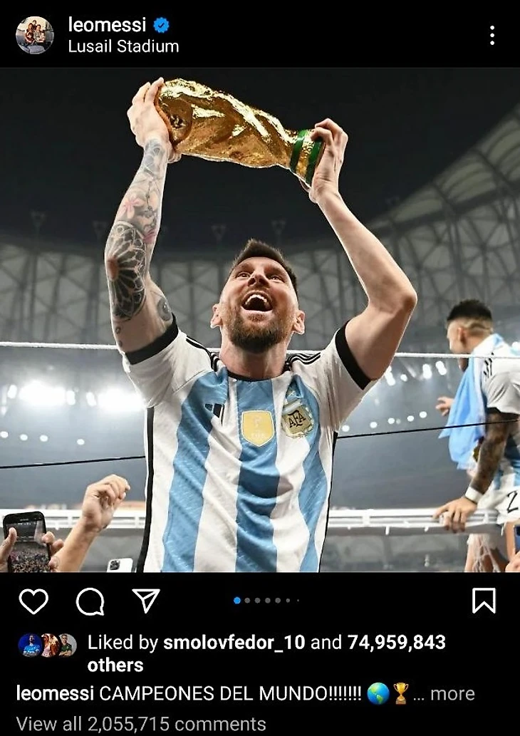 Проверили, сколько лайков сейчас у фото Месси с Кубком мира, которое стало самым популярным за всю историю инстаграма – цифра просто безумная