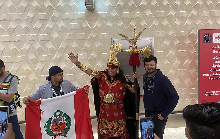 Пожалуй, самый колоритный болельщик, встреченный в Катаре. Однако ещё сложнее было не отвлекаться на барышню в белых брюках по соседству с ним. К сожалению, в перерыве она куда-то пропала.