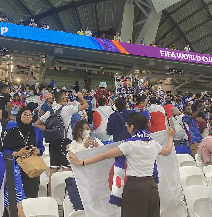 Японцы покинули Катар с высоко поднятой головой. Несмотря на проигрыш после матча они нашли мужество пройти вдоль нескольких трибун и поклонились фанатам. Символично, что их поклон моему сектору совпал с эмоциональным пиком в песне Arhbo. На 100% ярчайшее впечатление Мундиаля.