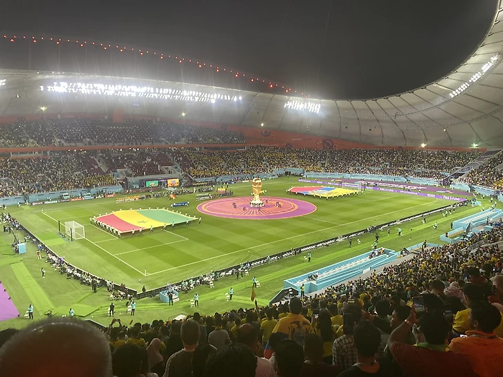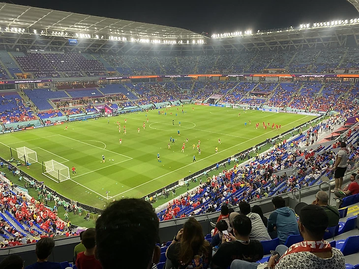 Самый ожидаемый на групповой фазе матч ЧМ встречал знаменитый стадион 974 из контейнеров. Как и было задумано ранее, именно эта встреча решала судьбу второй путёвки в 1/8 от группы G.