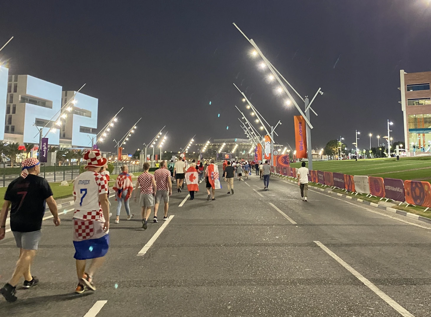 Парень эмоционально орёт "finaly", потому что от фан-зоны до станции метро Аль-Бида нужно было проделать неблизкий путь пешком. Ближайшая станция Корниш работала только на выход.