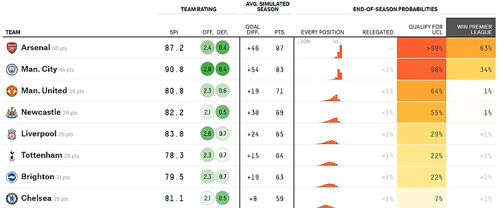 Топ-8 АПЛ сезона-2022/23 по версии FiveThirtyEight
