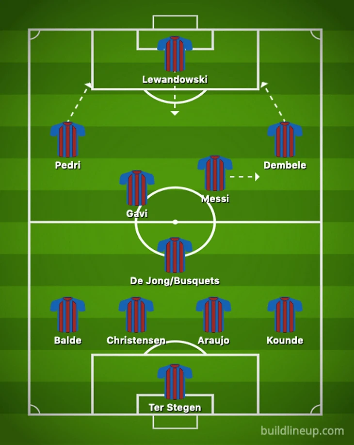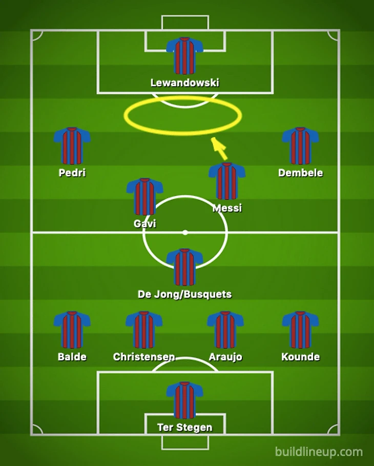 Будучи атакующим полузащитником, Месси может занимать атакующую позицию в центре поля и контролировать владение команды, поддерживая Роберта Левандовски и Усмана Дембеле в нападении.
