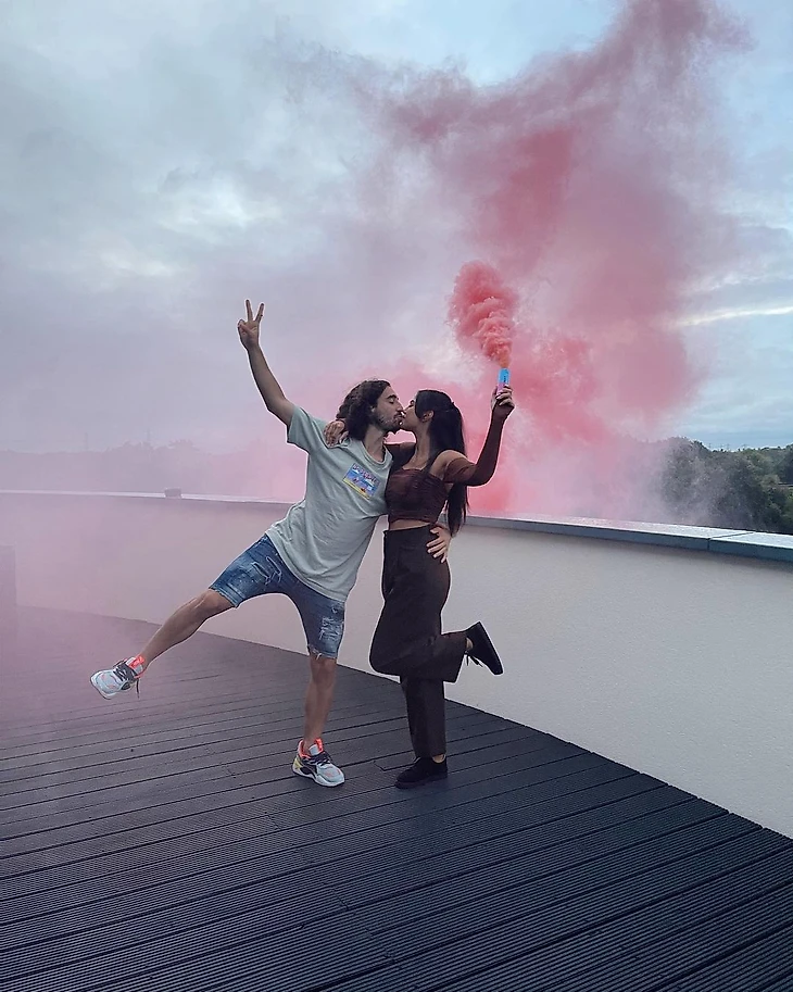А недавно влюбленные красиво объявили, что ждут третьего ребенка. Клаудия зажгла розовую дымовую шашку – значит, будет девочка!