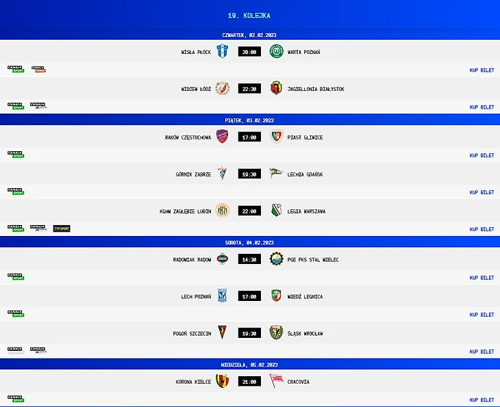Закрывался первый тур в 2023-ем году матчем между «Краковией» и забжанским «Гурником». Уже на старте матча хозяева сами себе чуть было не привезли гол, но удар Подольского успел заблокировать Яблонски. Быстро краковчане забрали мяч и инициативу себе. Кнап мощно пробил со штрафного, но Бьелица был на чеку. Спустя пару минут Бьелица уже не помог гостям. После подачи новичка хозяев Атанасова Гицэ отправил мяч в ворота. Отдельно стоит отметить тройку футболистов забжан, которые пытались прервать полёт мяча, но столкнулись друг с другом.
