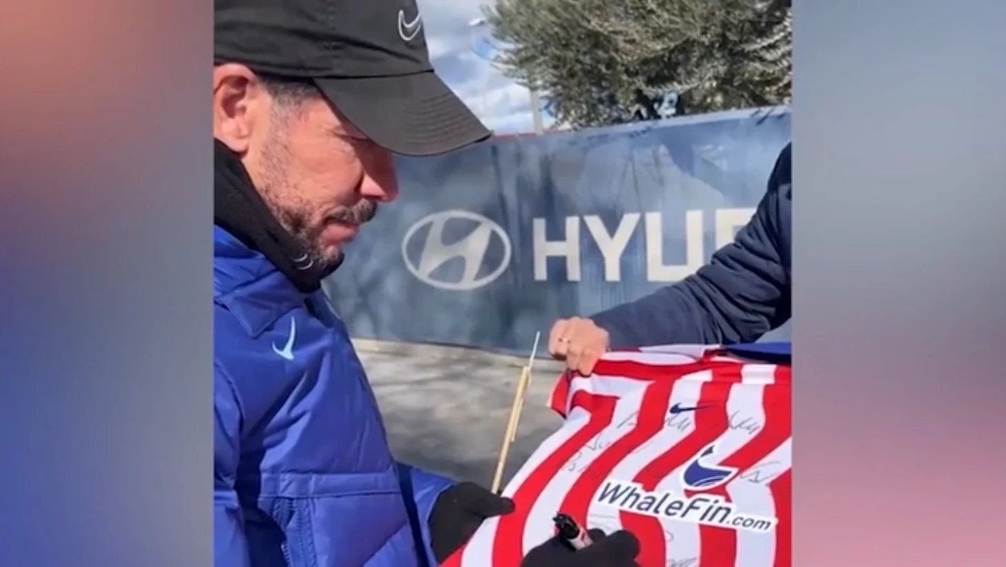 Кроме милой беседы с любимым тренером и фотографии на память мальчик получил футболку с автографом Симеоне.