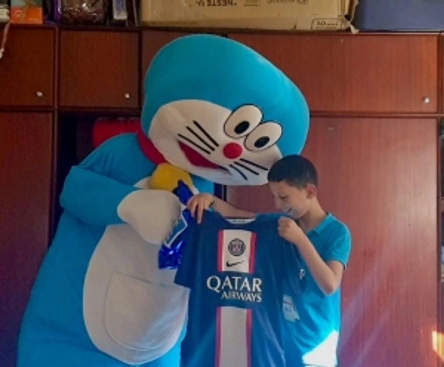 • У юного Сидхамеда две любимые вещи: персонаж Дораэмон из японской манги и «ПСЖ». Фонд «Pequeño Deseo» совместил их: человек в костюме Дораэмона пришел к нему домой и торжественно вручил футболку любимого клуба. Сидхамед сразу же ее надел – его счастью не было предела.