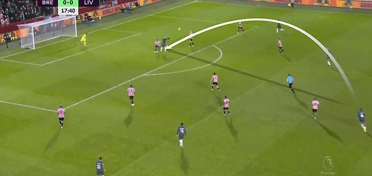 Игра с «Брентфордом». Нуньес проигрывает борьбу в чужой штрафной.