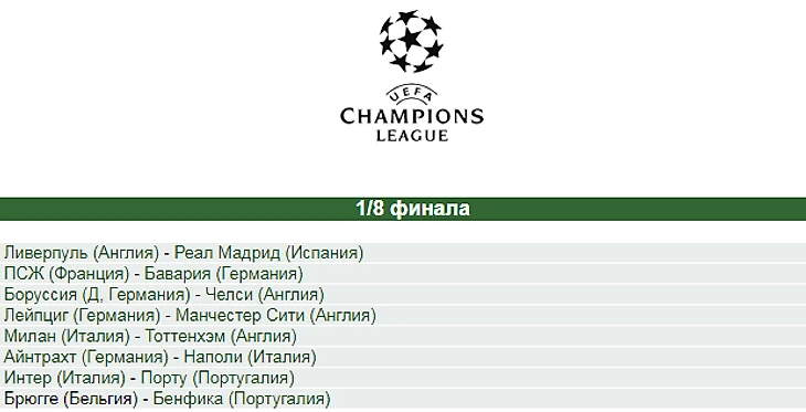 1. 14 февраля 2023 года до 20-00 по московскому времени верно написать в комментариях под постом 8 участников четвертьфинала Лиги чемпионов сезона 2022-2023 годов.