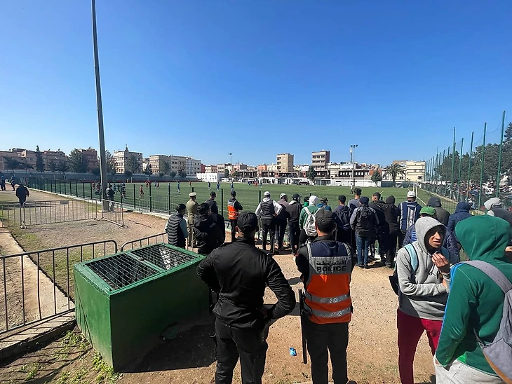 Когда подъехали к стадиону, просто обалдели. Почему-то мы были уверены, что на матч любительской команды в Кубке Марокко в 14:00 в будний день никто не придет, и мы спокойно пройдем на трибуны. Но нет: единственный вход на стадион был похож на ад. Огромное количество не очень адекватных ребят в атрибутике толкались друг с другом, кричали – вели себя очень агрессивно.