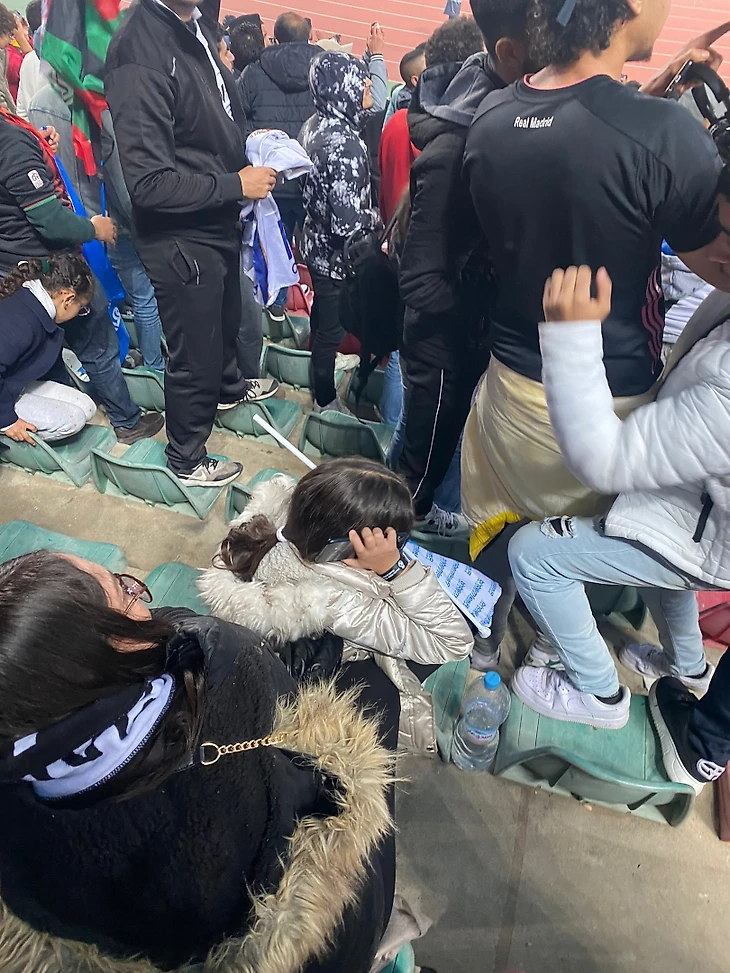 Мы не стали душнить и пересели на свободный ряд, хотя все предыдущие игры такой проблемы не было, мы всегда сидели согласно билетам. Но стоит признать, что отношение к заполнению трибун в Марокко своеобразное: например, приличная часть болельщиков игнорирует возможность провести матч сидя и всю игру стоит в проходе. Непонятно, зачем и почему, но стюардов все устраивает.