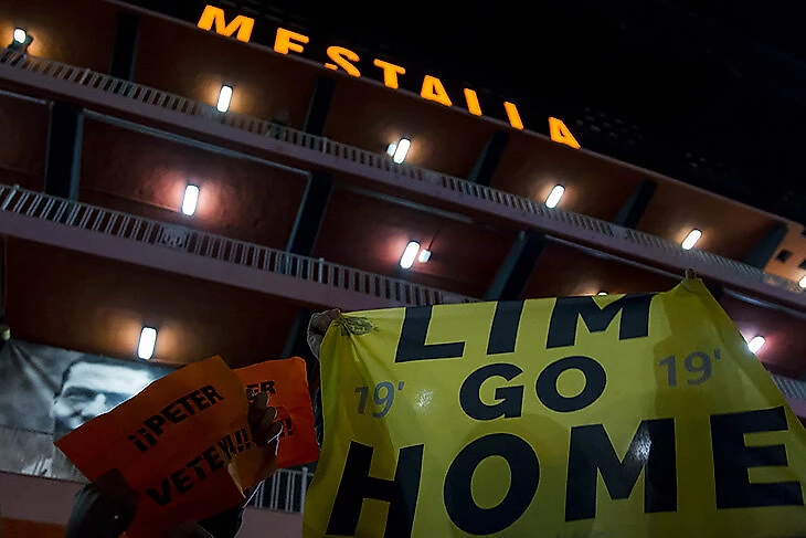 Протестующие заряжали «Лим, иди домой». Это же послание было на многочисленных баннерах и плакатах.