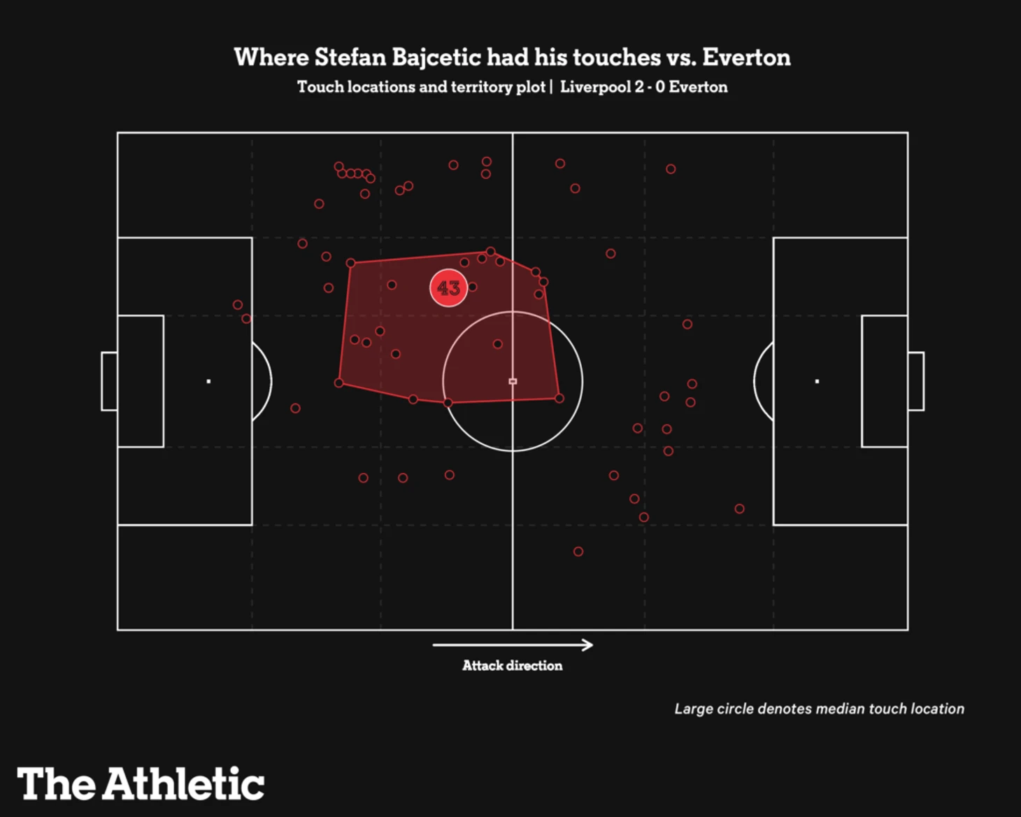 Даже на новой позиции слева в полузащите, играя вдвоем с Фабиньо, который опустился глубже, Байчетич выглядел невозмутимым. Впервые сыграть «восьмерку» в такой напряженной игре должно было стать непростой задачей после того, как в своих предыдущих выступлениях он играл преимущественно на позиции глубоко опускающейся «шестерки». Но Байчетич летал по полю, мучая «Эвертон» своими изматывающими действиями, точным контролем и молниеносными передачами.
