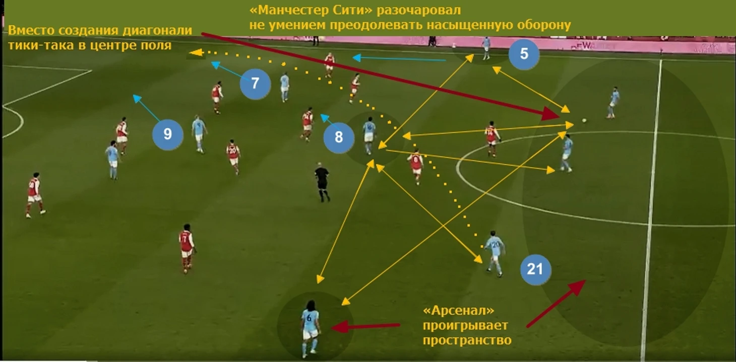 Гвардиола добился своего заставив лондонцев ошибаться при выходе из-под прессинга, и три раза эти ошибки были наказаны голами. «Арсенал» же свои возможности забить гол не реализовал если не считать сомнительного пенальти