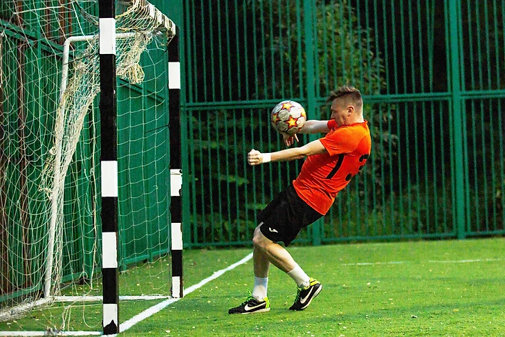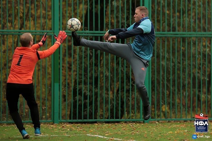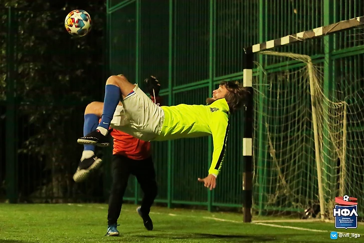 Удары через себя (пусть и без падения) не такая уж частая история в любительском футболе. А когда это делает вратарь (в данном случае из команды «Посейдон»), это вдвойне круто.