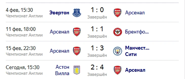 Команда под руководством Артеты разделалась над проблемной Астон Виллой. Матч был напряженный, с большим количеством голов и закончился со счетом (4:2) в пользу «Арсенала». Последний раз, когда команде из Лондона удалось взять вверх датируется 22 января. Это был матч против «МЮ», который решился в самой концовке. Счет в этом противостоянии был (3:2)