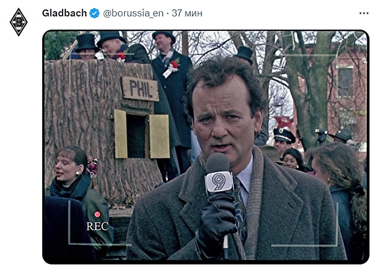 Когда счет стал 3:1 в пользу «Менхенгладбаха», аккаунт запостил скриншот из фильма «День сурка». Да, «Бавария», это снова потеря очков в матче против нас.