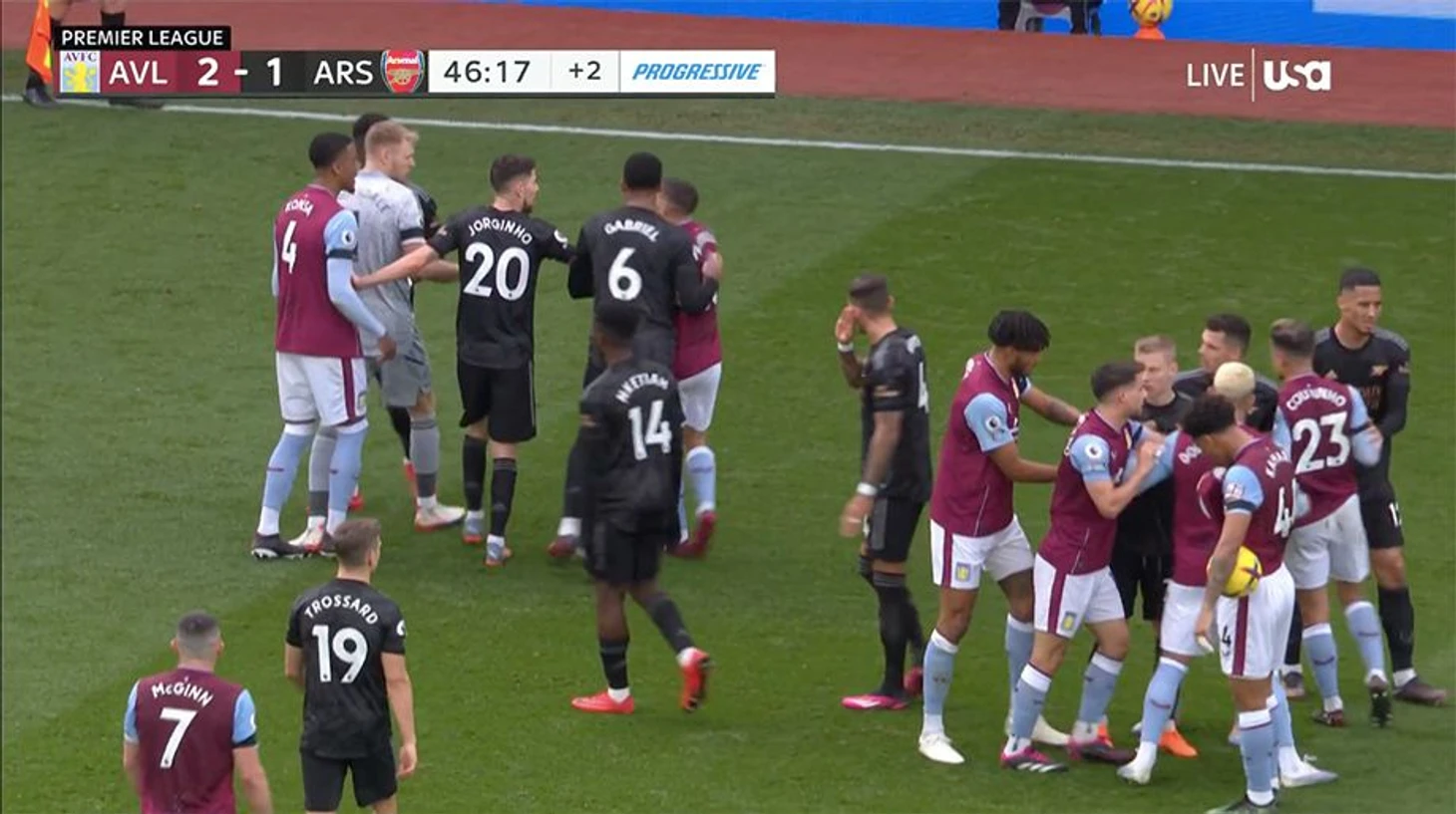 38:37 Травма:Морено Александре (Астон Вилла) получает травму. Остановка игры.Морено получает по ногам от Сака после единоборства за мяч и остается лежать на газоне.