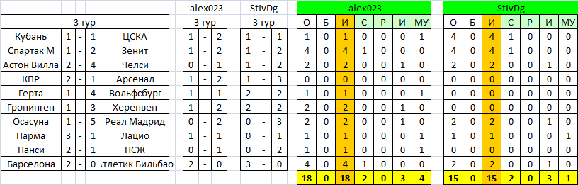 №2: tsypile, который встретившись с Элом в Кубке, проникся уверенностью в своей цели – в Москву, в Москву! В ПЛ! В ПЛ!. Лишь одна ничья в 4-х матчах с 2-мя бывшими представителями ПЛ – очень серьезный результат. Как итог – наблюдение Андрея на вершине в ПД и в 1/8 финала Кубка. Если продолжит в таком же темпе еще 4 тура – победный финиш будет на расстоянии вытянутой руки.