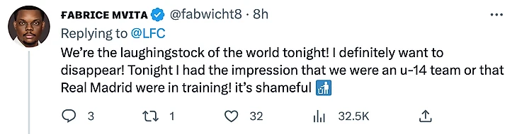 💭 «Сегодня вечером мы были главным посмешищем в мире! Я просто хочу исчезнуть! У меня сложилось впечатление, что мы были командой U14 или что «Реал Мадрид» тренировался! Это позорище.