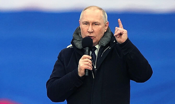 До последнего не было понятно, примет ли участие в митинге Владимир Путин (его пресс-секретарь Дмитрий Песков отказывался отвечать на этот вопрос), но президент России все же приехал и выступил с речью.