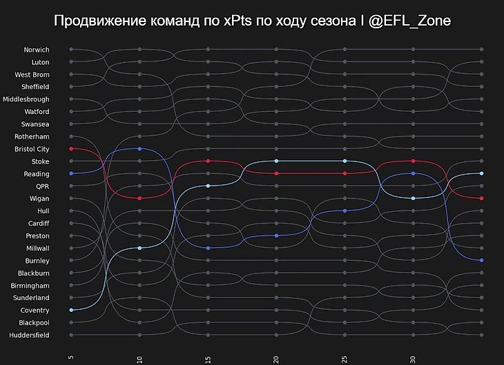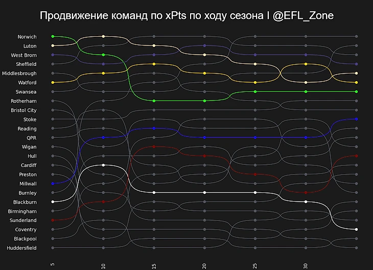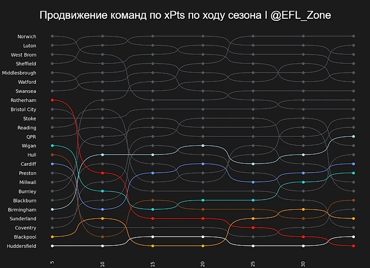 Если вы знакомы с командами чемпионшипа, но хотите погрузиться в цифры, можете листать к этим графикам.