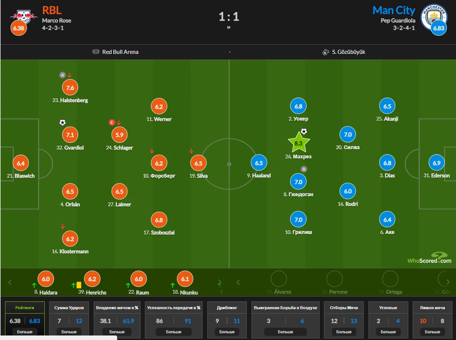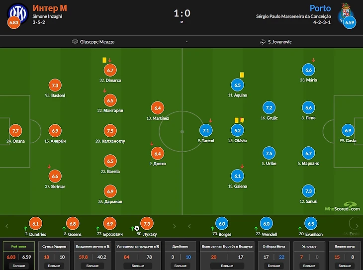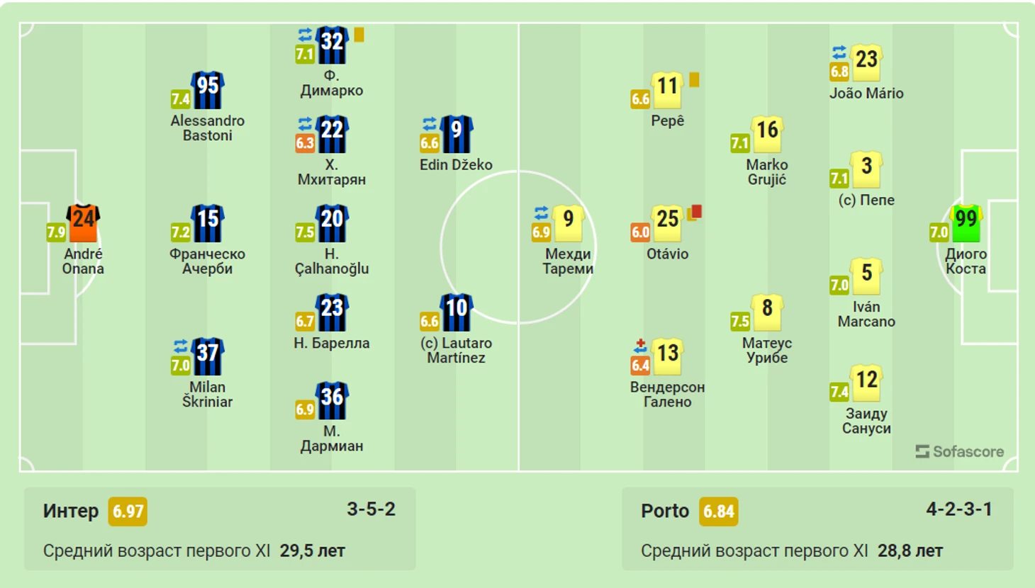 1) Андре Онана 7,8 Матеус Урибе 7,5