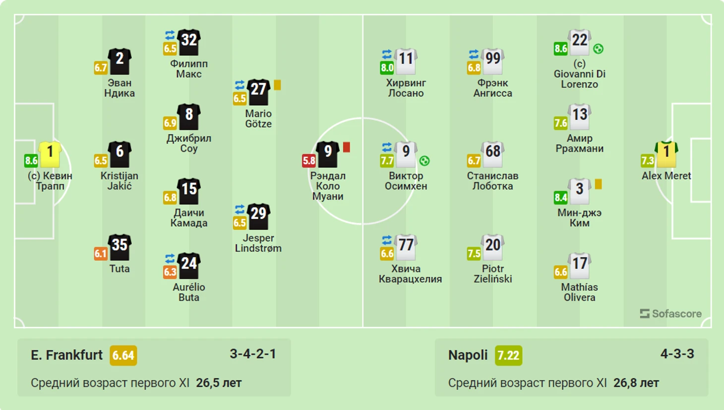 1) Грегор Кобел 8,9 Калиду Кулибали 7,1