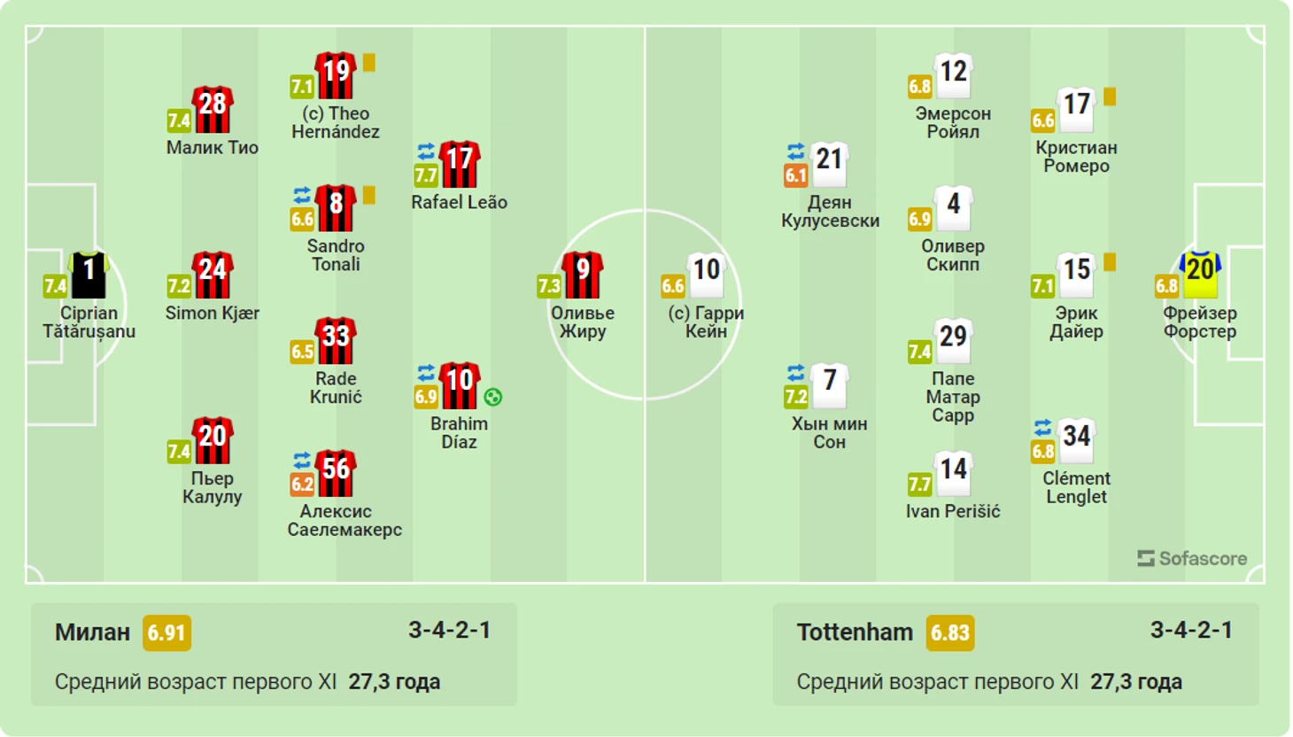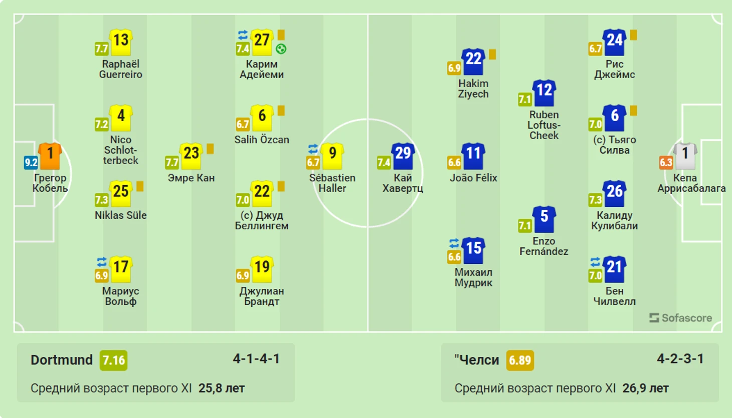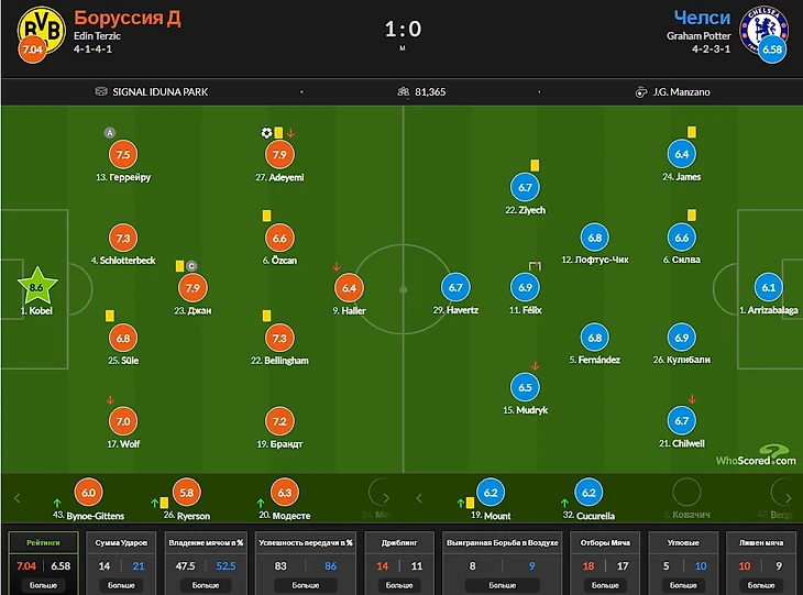 2) Эмре Джан 7,8 Кай Хавертц 7,05