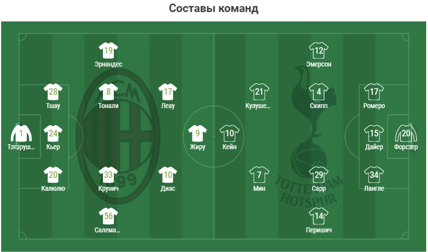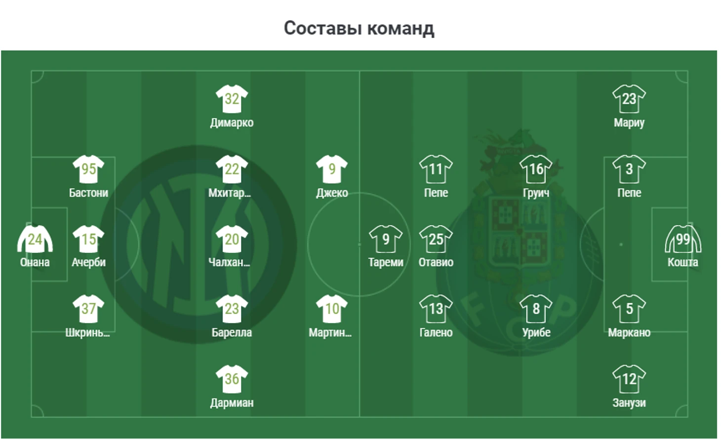 Зелёным выделена гостевая команда.